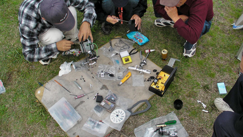 を入れます。91HZ-Rなのでちょっと始動は手こずったものの、その後は快調。細かな設定や配線の取り回しなどは今後つめていくことになりますが、それにしてもわずか5時間で90クラスを1から組み上げたチームワークの良さ?には感心しました。
