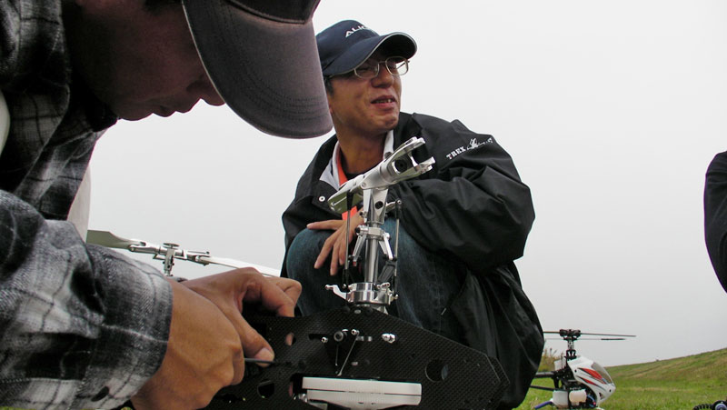 フライトまでは無事済ませましたが、細かな調整は今後の課題です。3Gメカの接続を初めて見たのですが基本的にスワッシュの3舵を代行するもののようでした。スワッシュ版ジャイロ?ですかね。すごい技術だなぁ・・・と思いました(^^;;