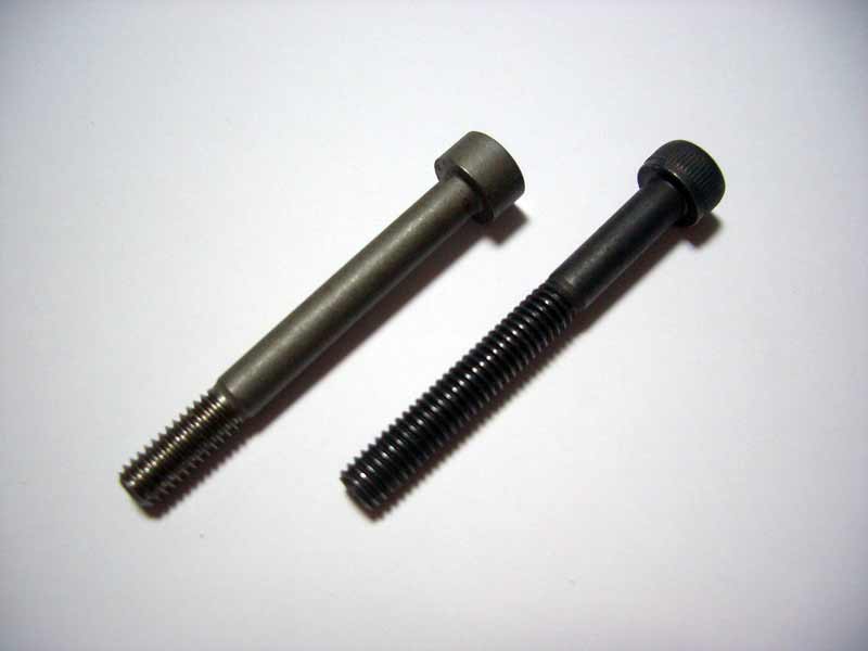 ラジコンヘリのメインローターは直径たった4mm程度のボルト1本で止められています。これをドラッグボルトといいますが、スカディーに純正品としてついてくるのはいかにも市販っぽいM4のボルトです。ボルトの頭からすぐ下の部分10mmほどはシャフト部としてネジが切ってありませんが、そこから下は全部ネジが切ってあります。些細なことなんでしょうが、このネジが切ってある部分がメインローターの取り付け穴に与える影響は少なからずあるのではないかと前々から思っていました。