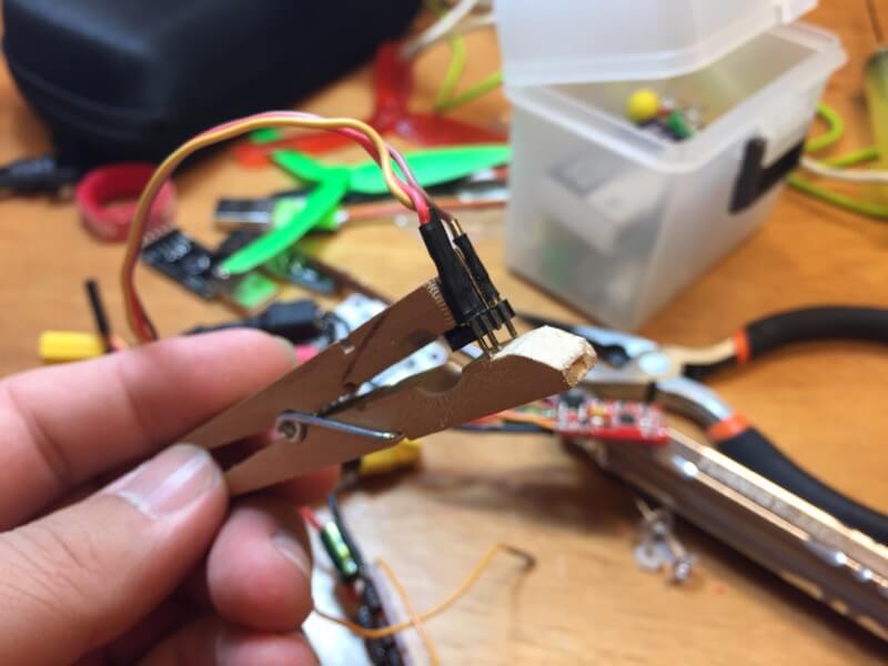 ArduinoとESCを接続するには両方のピンアサインを知っておく必要があります。市販のESCはたいていSilabsかATMELのチップが載っており、BLHeliSuiteはこの2種のチップをサポートしています。チップと交信するためのピンアサインはESCによってちがうのでBLHeliSuiteの参考資料から探し出します。今回のESCにはSilabsのチップが載っていました。基本的にGND/C2D/C2CKの3つをつなぐだけですが、ESCの種類・Arduinoの種類・使ったhexファイルによってピンレイアウトが変わりますのでよく確認してください。