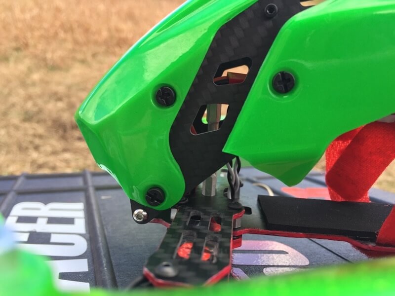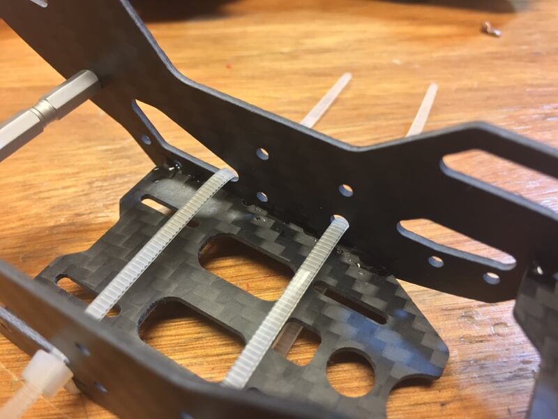 ビビっていると思われたカバー側のキャビンは瞬間接着剤でガチガチに固め、アルミポストもギュッと増し締め。キャノピーは防振として裏にスポンジを張ってみました。タイラップで締め上げてから瞬間接着剤を流し込みました(^^♪