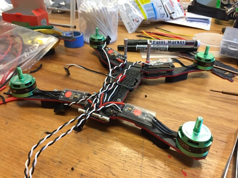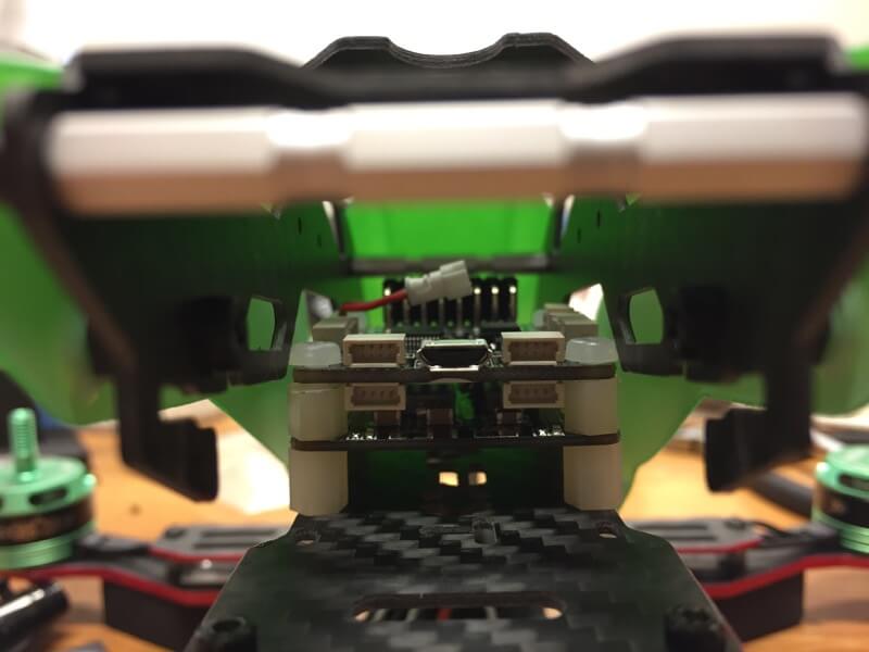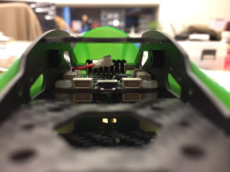 ところがここで問題発生。250Hのメカデッキ部分にコネクタを差す幅がない! 開閉式のキャノピーはメンテナンス性も良さそうで気に入っていたのですが、FC側面のUARTコネクタに繋ぐだけのスペースがありません。前後は大丈夫なんですが…。基盤にピンを立てるなどしないといけないようです…orzあまりに遊びのない設計…サイドのクリアランスが0です(T_T)