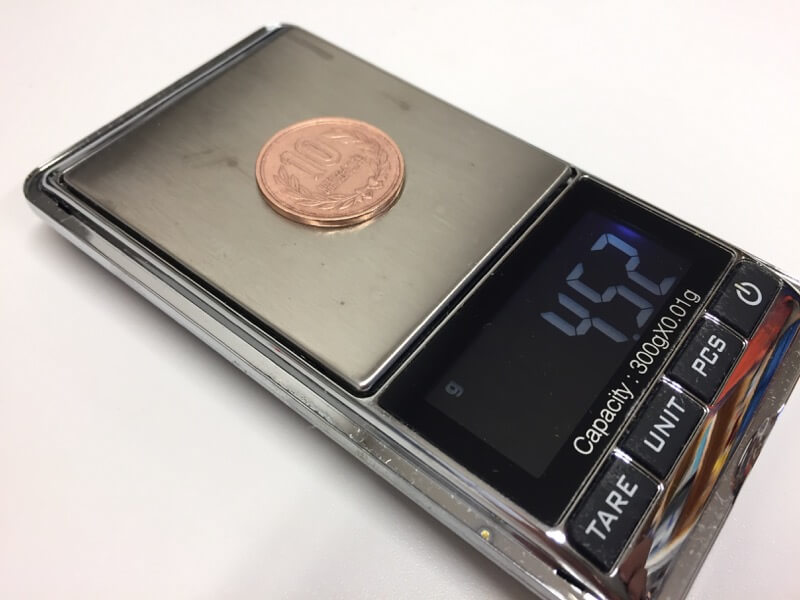 重さはおおよそ2g。10円玉と並べてみましたが、その小ささがお分かりいただけるかと。ケーブルさえ這わせれば載せるスペースが無いということはなさそうです。1円玉2枚分の重さでFAASTが使えます(笑)