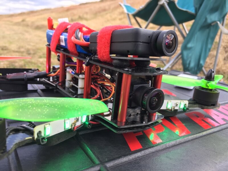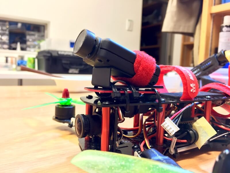 で、以前からの懸案だったモディファイを。まずはMobiusのマウント。ある程度の角度をつけておかないと、撮影した映像はほとんど地面を写したものばかり(^^;; 適当に塩ビ板でアングル付けて設置してみました。こんどはどうかな?左側くらいの角度では何も変わってませんでした(笑)
