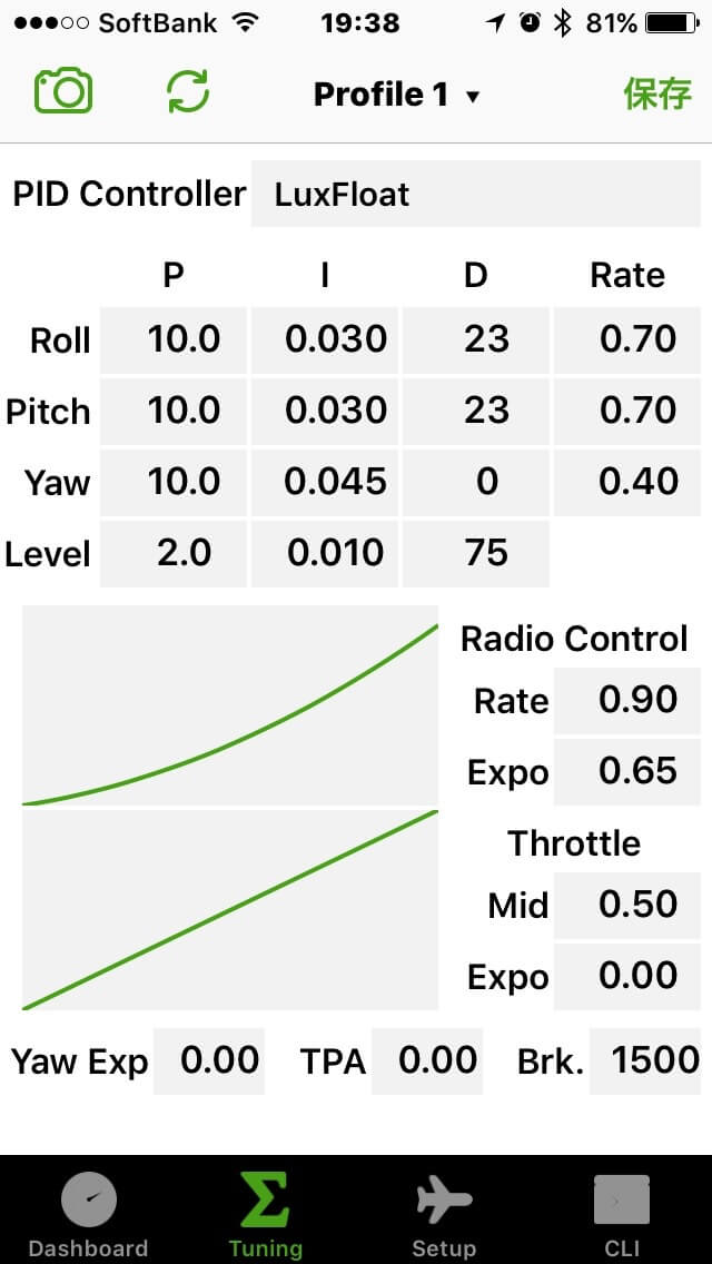 iOSは環境設定からのBT認識ができないのでLightblueで認識させ、その後Eazeを起動します。ちゃんと動くので感動します(笑) PID設定を細かく確認したい方にはオススメです。アプリによってはキャリブレーションや、スイッチの設定、はたまたCLIなどもできたりするのでちょっとした変更ならPCは不要かもしれません(^^;;