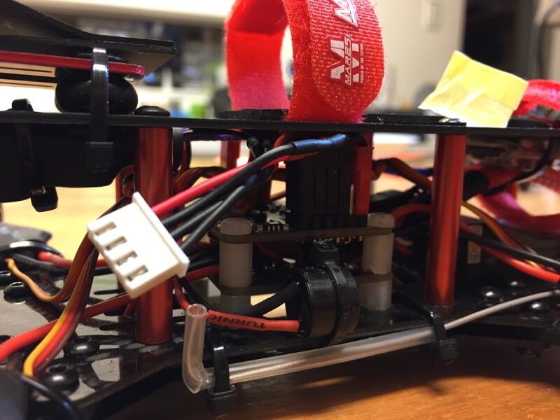 Naze32の真ん中近くに2ピンヘッダを立てました。ケーブルは3Sバランスコネクタ。