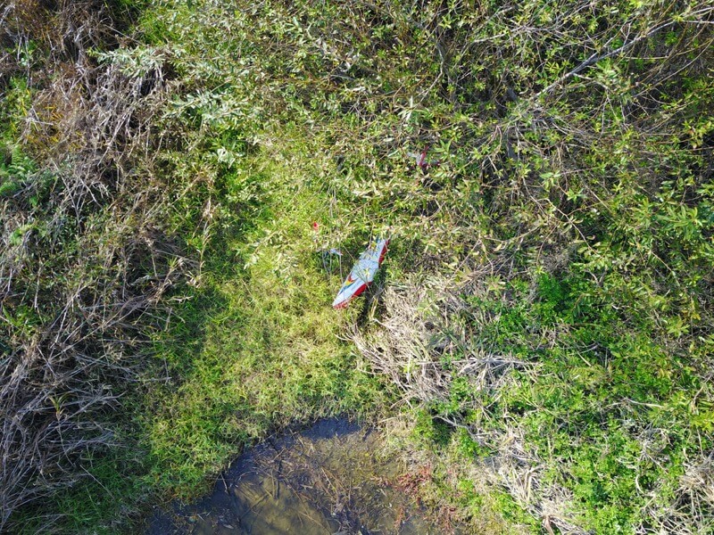 そして最後にぼくんちにお嫁に来たT-REX450。K2さんちから嫁いできました。1F目で謎のアンプカット?が入りブッシュへ墜落。機体が小さいうえに、K2さんはお上手なのでビーコンの装備がなく、捜索は難航。最近はなかなか機体を捜索することもなくなったので、ブッシュは伸び放題。泥や埃、茨なんかをかき分けて捜索すること30分。hatayanさんが舵を動かし、サーボの音を頼りにK2さんがようやく探し当ててくれました。ピニオンが若干ずれている以外には特に問題なさそうな機体ですが、ビーコン付けて再度調整の予定です(^^♪ いろいろとありがとうございましたm(__)mフルボディ風の艤装までやっていただいてます。大事にしますヽ(^o^)丿