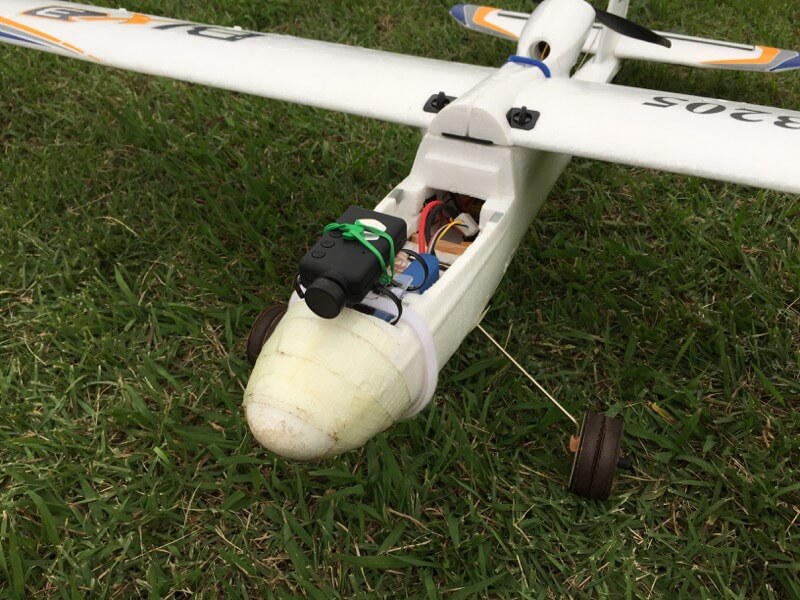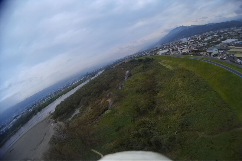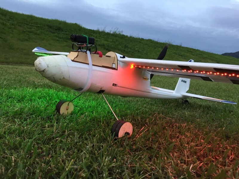 雨降り前の飛行場。無風で暗めなのでLEDが役に立ちます(^^♪ マウントを忘れたりするハプニングはありましたが、マッタリフライト。獣道を遡上する人影も発見。何してたんでしょう?
