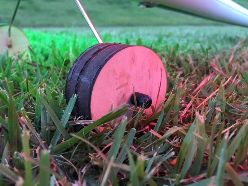 仕事帰りにBix3を飛ばしに行ってみました。お天気はまずまずでしたが、着陸時に自作前輪が外れてしまうハプニング。スポンジゴムだけではハブ部分がゆるくなってしまうようなのでt=2.5のシナベニヤを同じ大きさに切り出しサンドイッチする手法に変更しました。