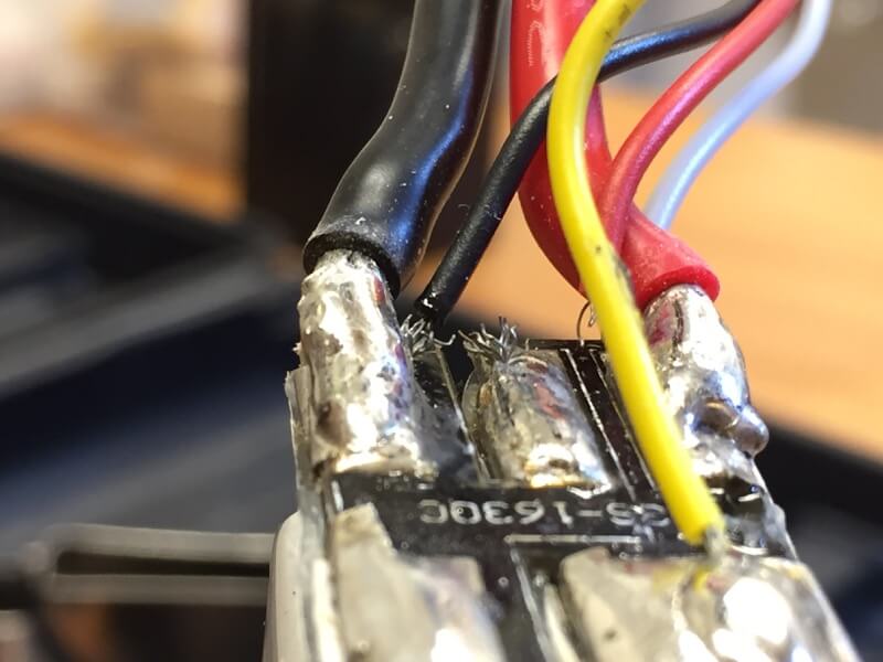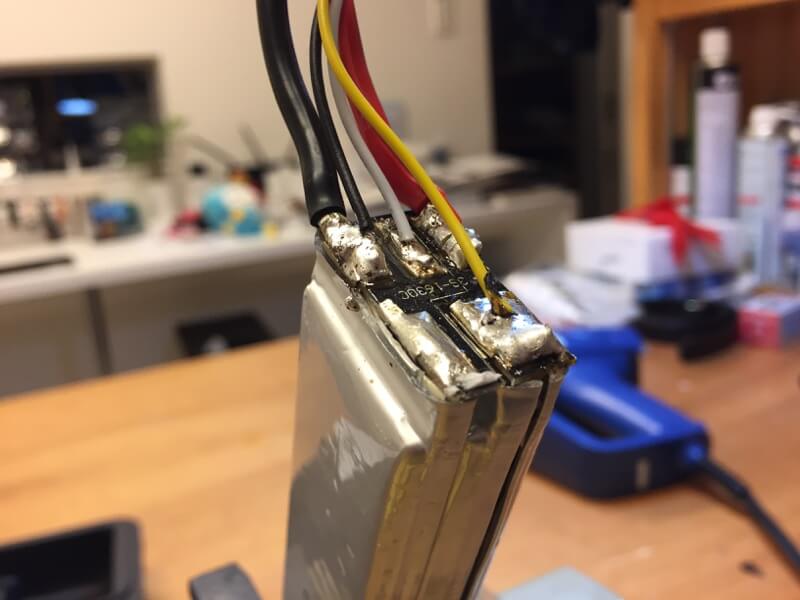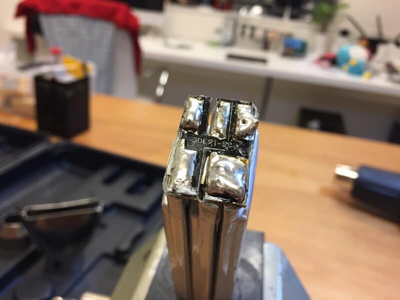 とりあえずワイヤはすべてセルから離断、再度組み直しました。こんな感じでハンダし直しました。