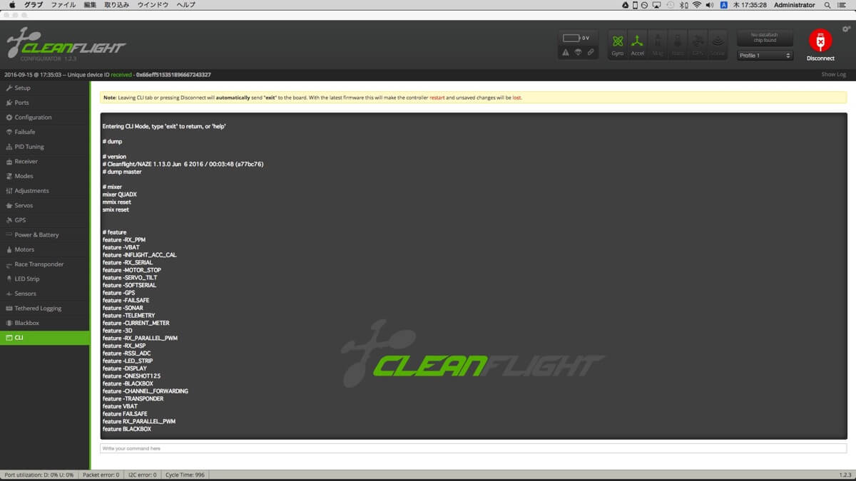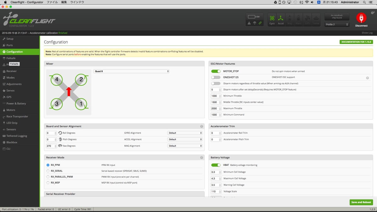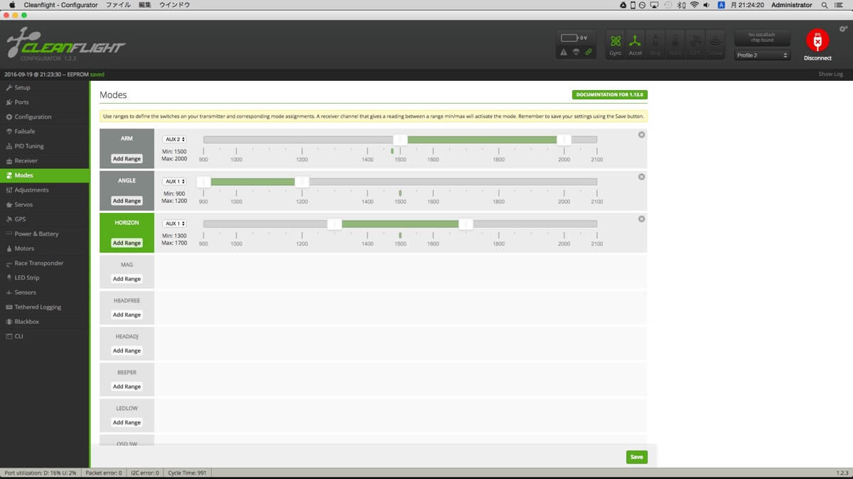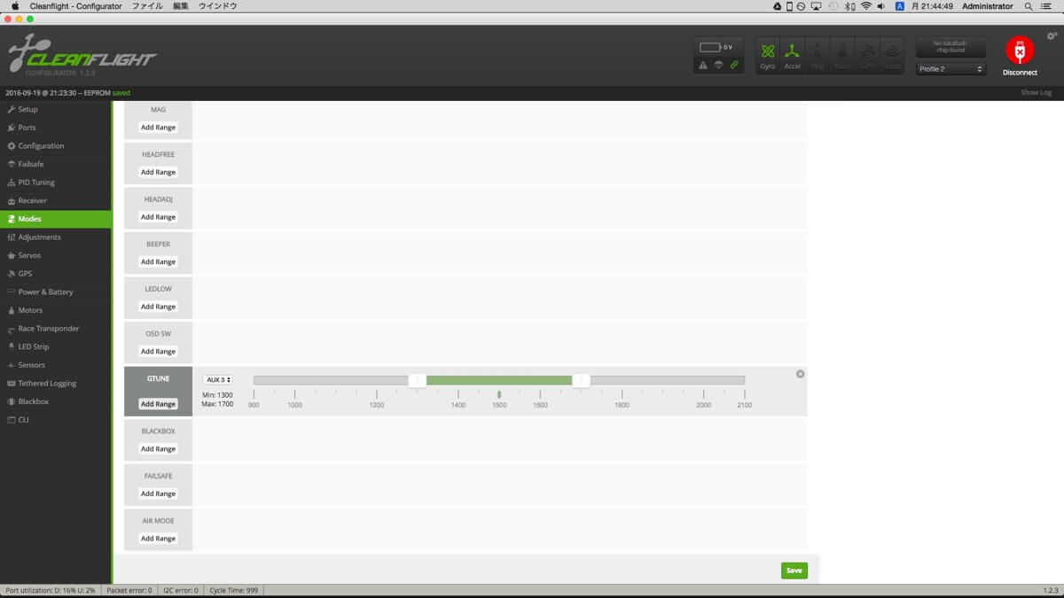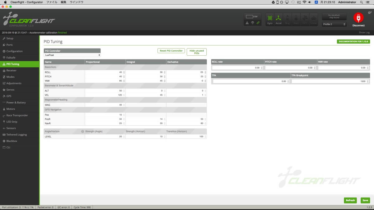 250復活に向け記憶喪失気味だった内容を思い出しつつ環境整備。本体はほとんど手を付けていませんが、とりあえずCleanFlightでもう少し詰めた設定を。
