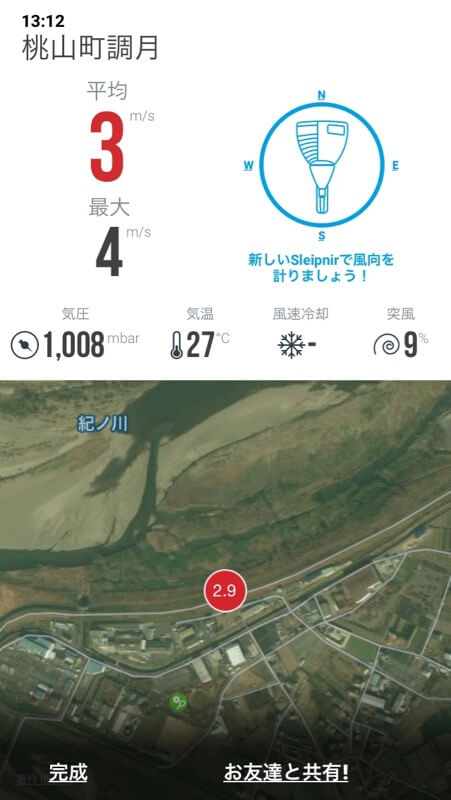 地表付近の風速。上空は相当あるようでした。