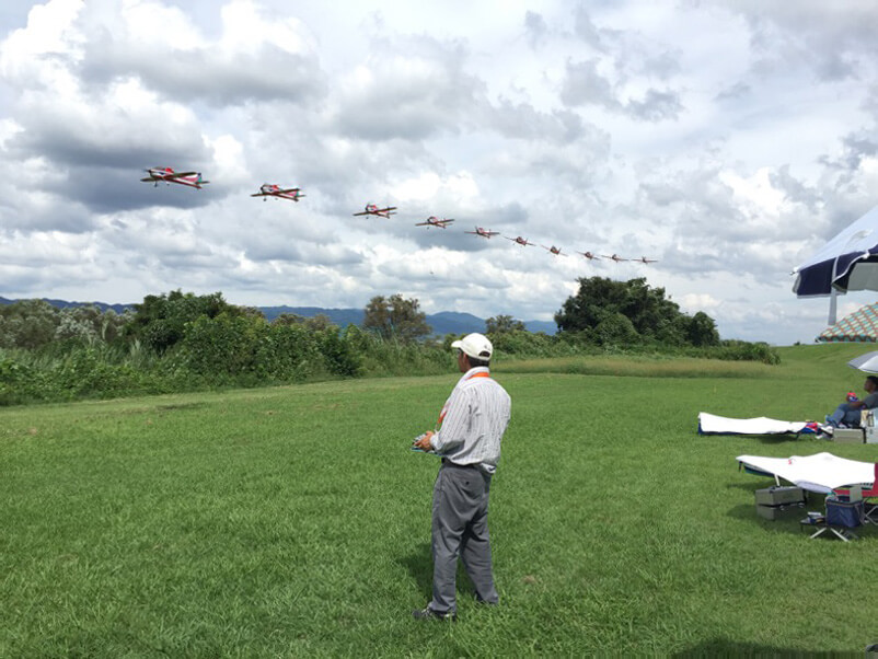 飛行機組は大会前の練習でしょうか。皆さん熱心でした。JYALAさんは相変わらずのぶっ飛びですが、最近飛行機見ないなぁ…(^^;;皆さん熱心に練習中。