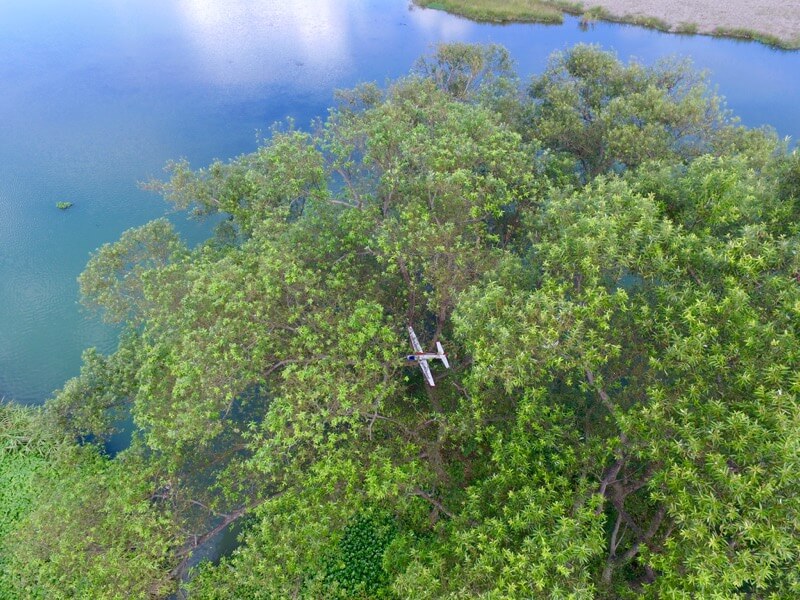 九州地方へ台風が上陸するかも…という予報のため朝早めに飛行場へ。すでにI店主はほぼ終了、T口さんとK2さんがちょうど機体搬入中でした。今日はBix3とEdge540、あとP3。P3は昨日の地点へT口機を捜索に。木の中に埋まってしまっている感じで、近づかないとよく見えませんがちゃんと確認できました。ただ、周辺の状況から回収はほぼ不能のようです…orz