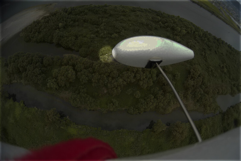 1F目。機体の落ちた場所もよくわからないので、JYALAさんの指示する方面で上空を旋回。風が吹いたりやんだりで、マッタリ飛ばすのはともかく定点を飛ばすのは難儀しました。そんななか、おおよそ400枚程度の写真を撮り確認。最初はなかなか写っていないなぁ…という感じだったのですが、その中に機影らしきものをとらえた一枚が!(゚д゚)!左:墜落地点。この角度では何も見えません。 右:おいやんのIdeal