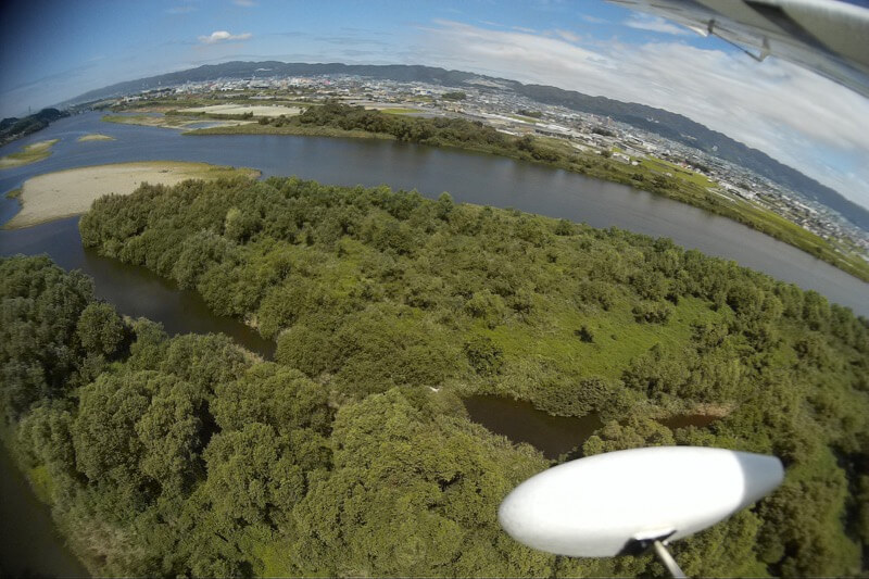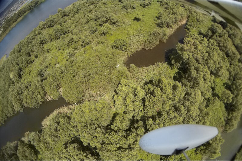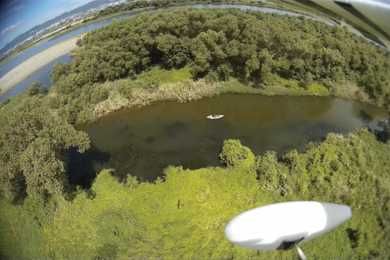 カメラ積みつつ2Fしましたが、おいやんのIdealちゃんがパターン中に指ノーコンとなり墜落。相当遠くに落ちた感じで、結局その場での回収は諦めましたが2F目のBix3のカメラを下方に向け撮影したところなんとなくの機影が。1F目の同じ場所には機影が写ってないので、おそらくこれではないかと思われました。もう少し精細に撮影したいのですが、固定翼機ではこの辺が限界のような気がするので、天候さえ許せばP3で再度挑戦してみようかと思います。左:1F目 右:2F目