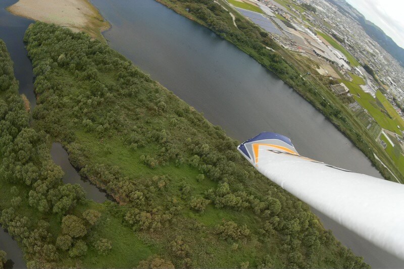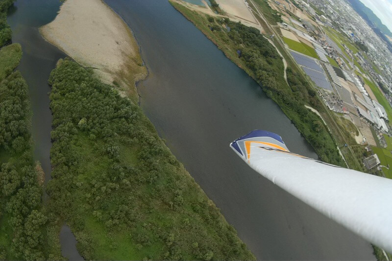 流れが一旦途切れる部分に白い機体っぽいものが見えます。