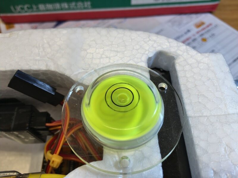 主翼付け根部分が水平になるようジャイロも水平に設置しました。