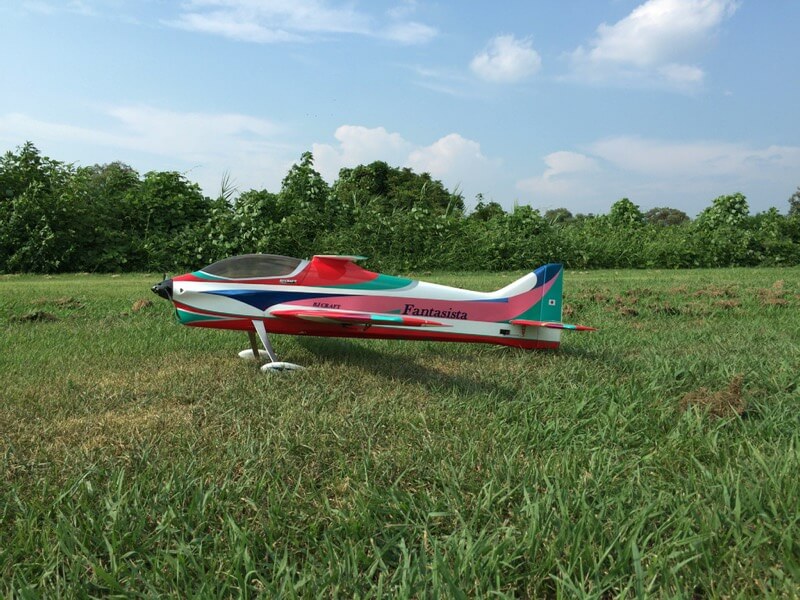 そこで帰宅後は3軸ジャイロの搭載を開始。ジャイロのOn/OffができるOrangeRX Flight Stablizer V2.0(現在廃盤。いま販売されているのはV2.1となっていて、ハイスピードサーボ対応やより安定化しているようです)。接続自体はそれほど難しくなく、受信機から3軸分の信号をジャイロに渡し、ジャイロからサーボへつなぐだけです。各ゲインの設定はポテンショントリマで調整します。ジャイロオフの状態で舵の確認、その後ジャイロオンでカウンターが当たるかどうかを確認します。機体に据え付けるとあまりカウンターが効いてないように思われますが、これが普通のようです。気になるようなら手で持って動かせばバンバン反応します(笑) ゲイン調整は少なめから、とのことらしく後半一気に感度が上がるようです。
