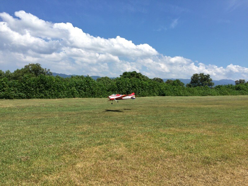 今日は5時過ぎに起きたので、初号機の調整でスタート。外は結構涼しかったのですが、日が上りだすと一気に夏モードに。10時過ぎに飛行場についた時はかなり暑かったです。そんな中I店主は8時半頃から飛ばし始めていて、僕が到着した頃には撤収モード、おいやんも早めにやってきてK2さんと入れ替わりくらい。昼前にやってきたK2さんとしばらくお相手していただきながら正午過ぎには撤収しました。暑いので飛行機やヘリを飛ばす前に人間のほうが飛んでしまいそうでした(笑)