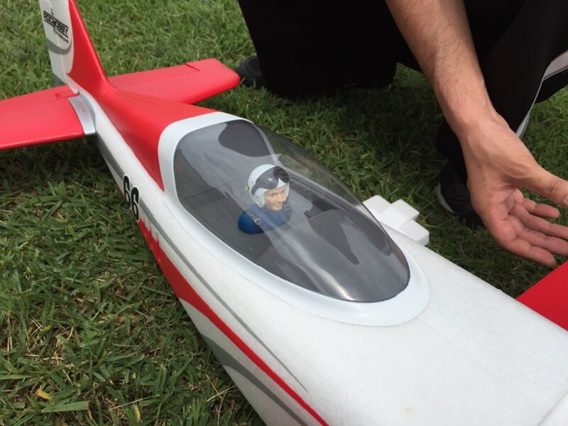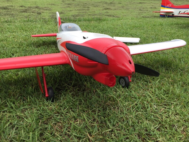 早さんのプロペラカバー。DIY感満載ですが抜群のアイデア(^^♪ Edge540をLipo1本分だけ用意して行きましたが、ちょうどJYALAさんの新型機が処女飛行直前。ROCHOBBYのNXT Nemesisです。ウイングスパン1100mmと小柄な機体ですが引き込み脚装備、最高速度はチューン次第で100mphというぶっ飛び仕様。2ペラで駆動される機体はまさしくぶっ飛びで、おいやんやK2さんの手を経てトリム調整など終了の後、JYALAさんへ。着陸がかなり難しそうで、フラップなども装備されているのですが効き過ぎると失速、効かなすぎると速度超過でハードランディングとなる感じでした。2Fめで土手に突っ込んでしまいモーターマウントが外れちゃいましたが、機体そのものはEPOのためかあまり被害はなさそう。温めて整形しなおせば大丈夫かと思いました(^^;;