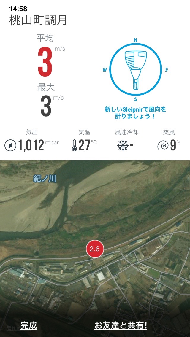 地表は3m/sec前後。木の葉の揺れからすると上空ではもう少しありそうです。