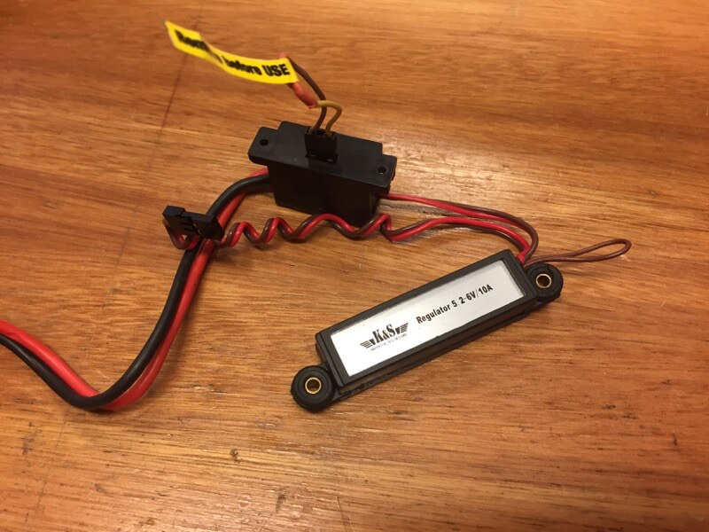 先日、B.F/Sに入ってしまった初号機ですが、レギュレータに原因があるものと考えレギュレータを変更することにしました。今まで使っていたのはK&Sの10Aレギュレータ。3端子レギュレータ2個で構成されているものですが【3軸ジャイロには使わないでね】みたいな但し書きがあったように記憶しています。先日も発熱がすごくて触れないほどでした。
