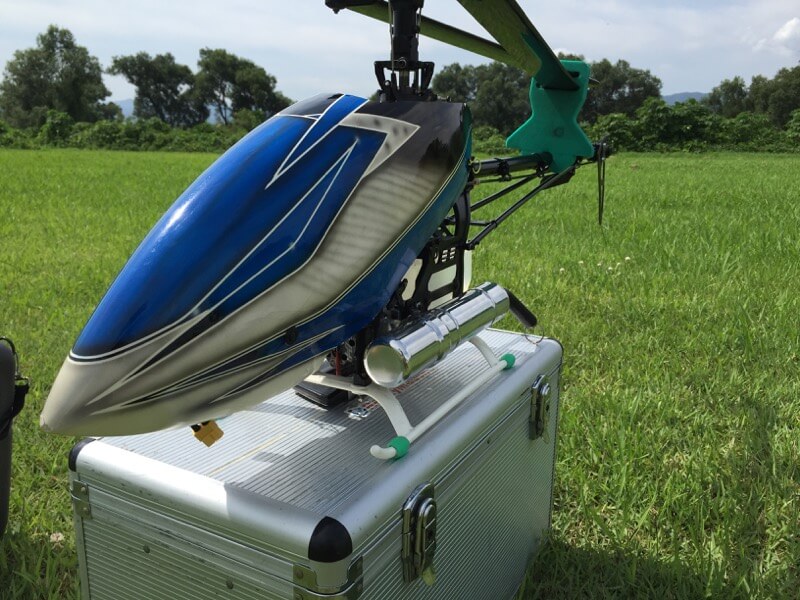 で、翌日のフライト。気温も昨日と同じ程度で、風は北西の風3m/sec程度。湿度も高くコンディションはほぼ同等だと思いました。1F分ホバリングさせてみましたが電圧のドロップも起こらずB.F/Sには入りませんでした。本体も暖かくなってはいるものの、余裕で触れます。むしろサーボのほうが熱くなってる感じです(^^;;