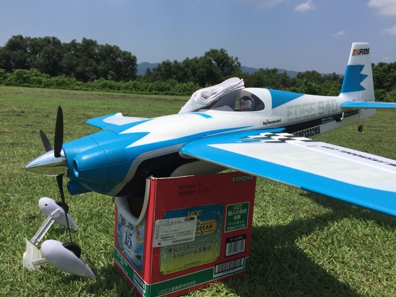 ここ最近、週末は雨続きでしたが今日は朝から快晴。おいやんが草刈機を持ってきてくれたので久々に日曜日の草刈りとなりました。草刈り終了後は皆さん色々と飛ばされましたが、今日はEDGE540もデビューさせました。ラダーが逆だったりしましたが、EXP70%くらいでK2さんに処女飛行を託し、後半着陸まで僕が飛ばしました。着陸時に脚がもげましたが軽傷でした(^^;;
