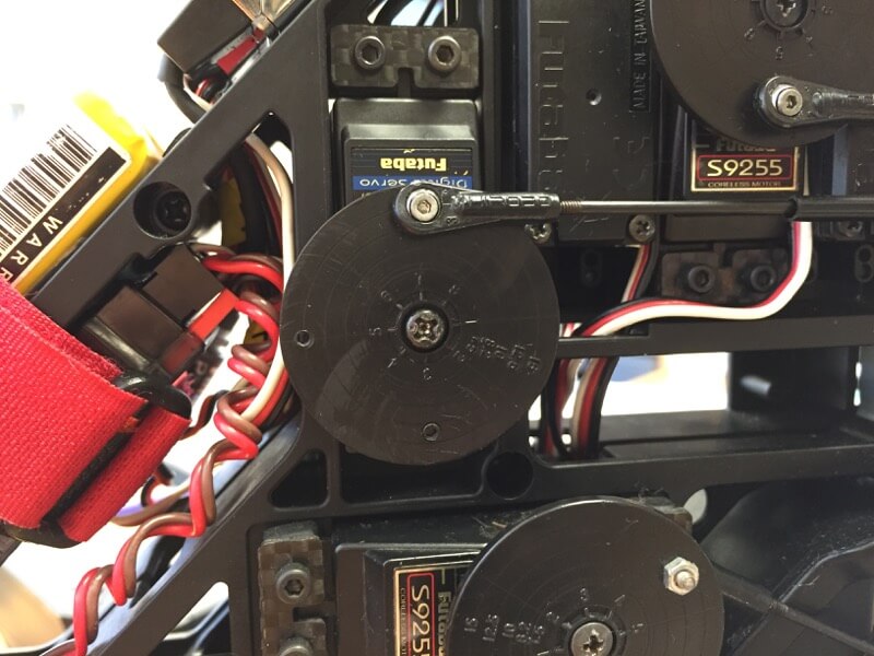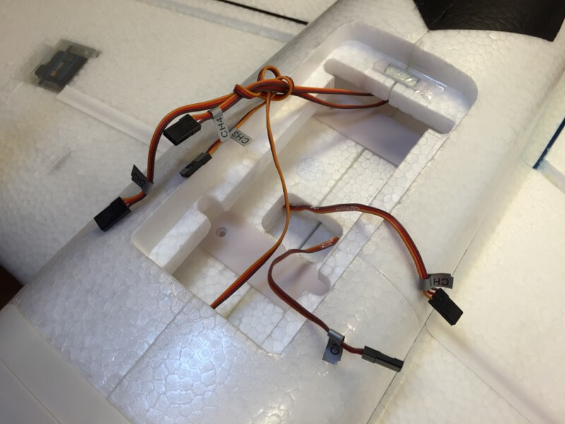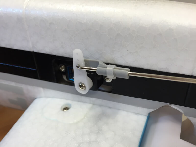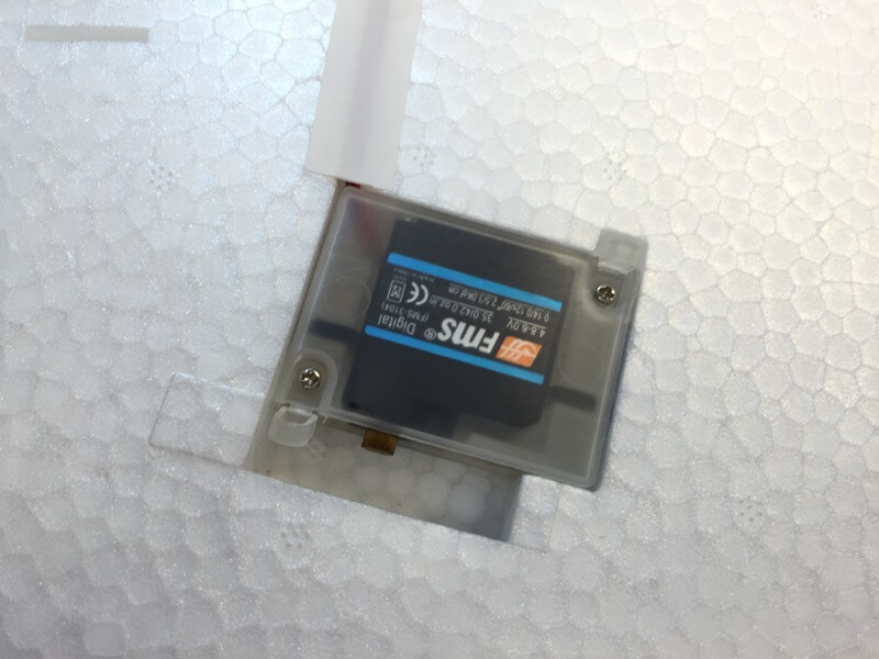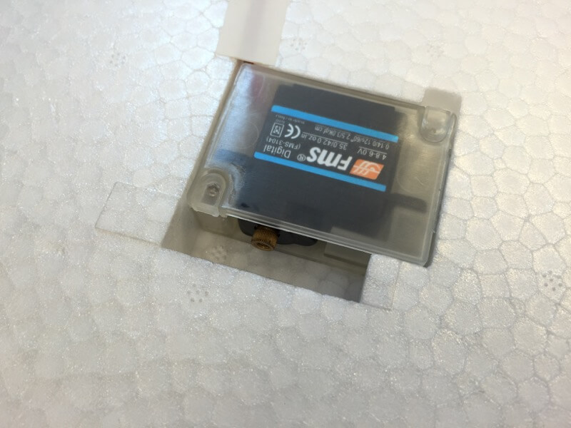エルロンサーボは固定ケース入り。最初、どうやって外すのかわかりませんでした(^^;;