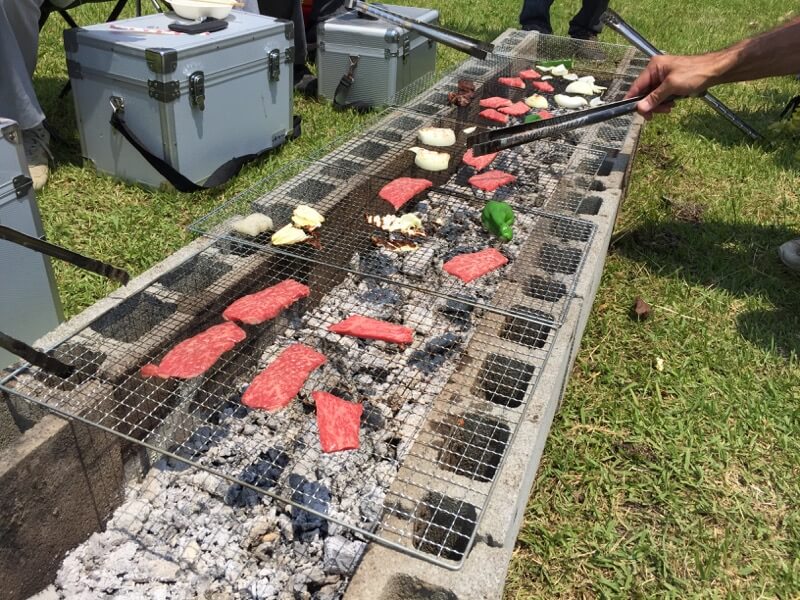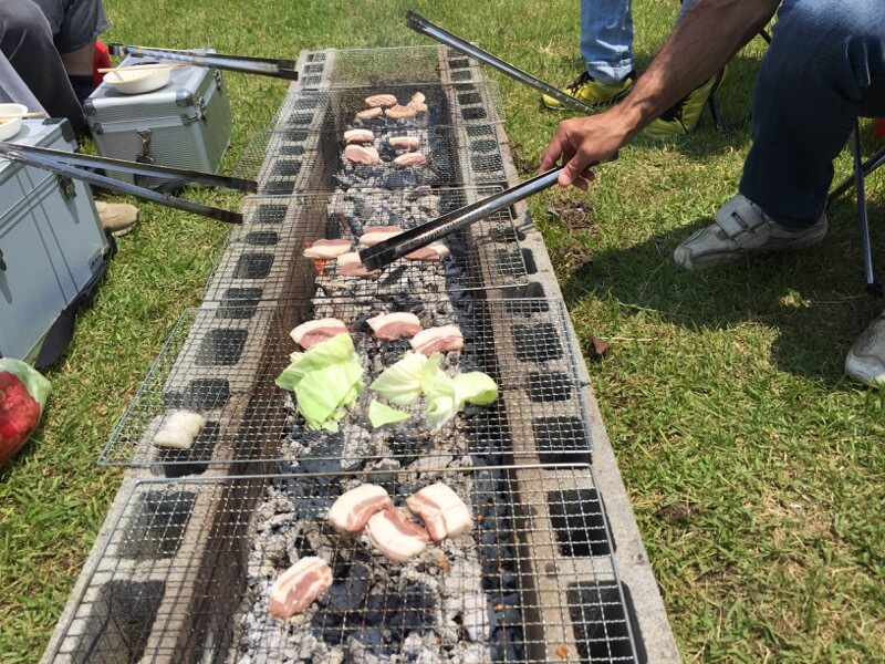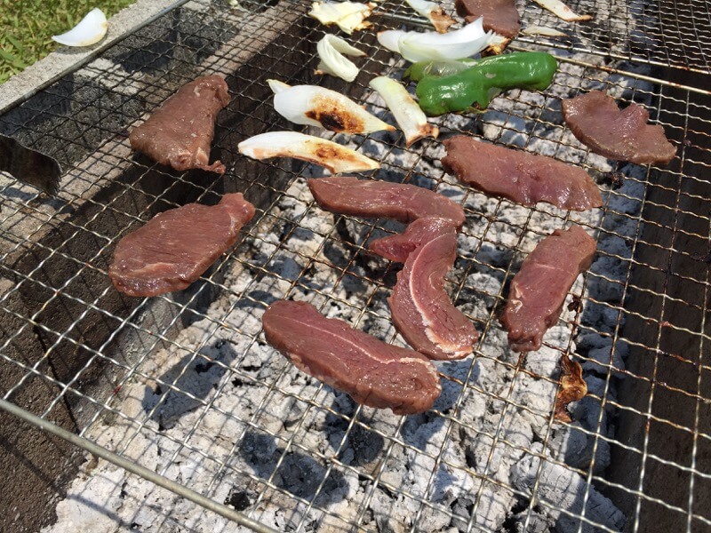 昨日の夕方から職場の懇親会&お泊り会だったのですが、終わってからはそのまま飛行場へ。いいお天気で絶好のBBQ日和です。7人で色々とつつきました。K2さんやI店主には猪肉や鹿肉を持ち込んでいただきました。鹿肉は初めて食べましたが、思った以上にあっさりしていて美味しかったです(^^♪