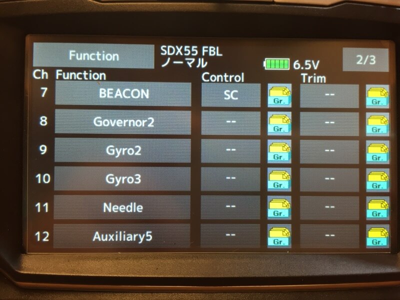 CGY750は一旦リセットしたのではっきりとはわかりませんが、どうもビーコンのチャンネル(7chにしていた)とエレベータゲインのチャンネル(標準で7ch)がかぶっていたようです。プロポを18SZに変えてからの異常のような気がするので、どうやらプロポ移行時に見落としていたようです。