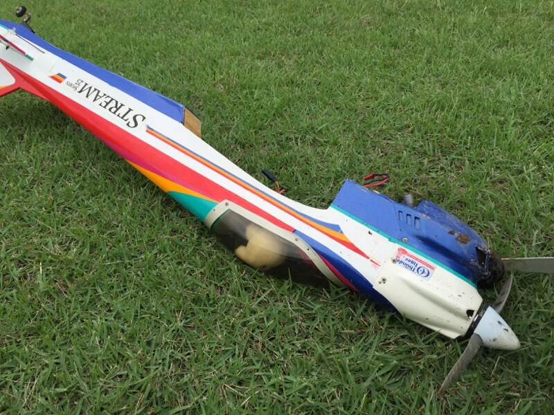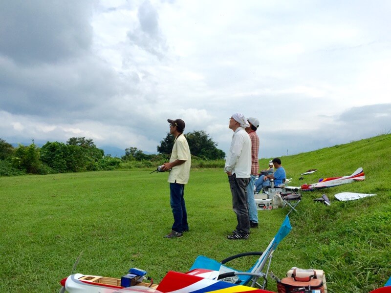 先日から10日間、ほぼ仕事でしたがついに釈放の身となり飛行場へ。GY750はO/Hへ出してますので、以前K2さんから頂いたSTREAM飛ばすことにしました。18SZで飛ばすのは初めてだったので、まずはバインド。舵の設定もおいやんに見ていただきながら終了しエンジン始動。まずまずなんですが、姿勢変化でエンストする感じだったのでI店主やK2さんの手も借りつつスロー調整などを行なっていただきました。無事上空へ飛び立ち、I店主の手でトリム調整などを行ってもらったまでは良かったんですが、その後プロポが渡されてからが大変。STREAMは優雅に飛ばす機体ではないので、スロットルは煽り気味が正解のはずですがあまりの速さにビビってしまいスロットルを軽く下げたところでエンスト。必死こいてなんとか機体を戻そうとしましたが失速し墜落。幸い深めのブッシュの中でしたので脚だけの損傷でしたが本日はこれで撤収。ついに飛ばす機体がなくなりました。B2は壁掛していたのですが、家人の不意のアタックで機首がボキっと折れてしまい修理するかどうか迷ってる最中(^^;; Caipiとか箱に入ったままのEdgeとかもあるんですが、とりあえずはSTREAM修理かなぁ…。