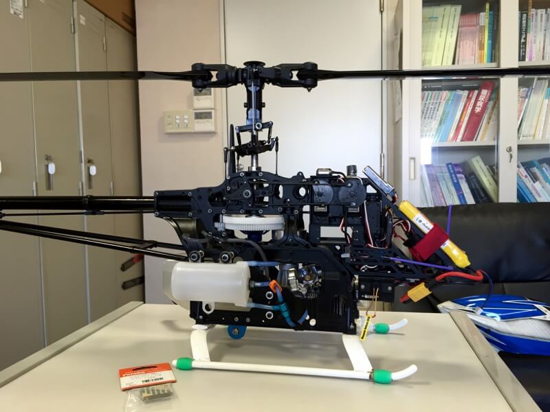 幽閉の身ですが、城内ではそこそこ自由なので初号機の調整。ジャイロセンサの両面テープをFutaba純正の両面テープ(NITTO製ですが…)に変更し、レート表示が直ったので再度ピッチを調整。ピッチゲージの電池切れ警告が出たので電池も入れ替えました。初めて入れ替えたような気がするので数年は保つようです(笑) 他にもFBL100のサーボを交換したりしました(^^;;