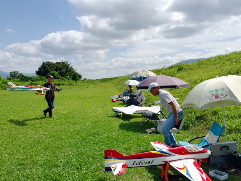 先日まで北海道へ旅行しておりまして、なんの下準備もないまま飛行場へ。残暑厳しい飛行場にはいつものメンツさんが。今日は18SZを初めておろしました。リンクは現地で施行。タイミングずれか、しばらくリンクできませんでしたが、そのうちちゃんとリンクするように。12Zからの手動コピーなので、あちこち修正すべき部分がありましたが、とりあえず設定を済ませエンジン始動!と思いきやブースターの電池切れ(^^;; T森さんにブースター貸していただき無事始動。からのブースターはK2さんに充電してもらいましたヽ(´ー`)ノ