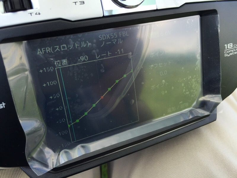 あと、気になったのがカーブ設定画面。どうも【レート】表示がグラフ画面と一致しないようです。設定したレートとグラフ上部のレートが一致しないだけで、特に問題はないんですけど、微々たるバグのようですね。Futabaに改善していただきましょう(^^♪