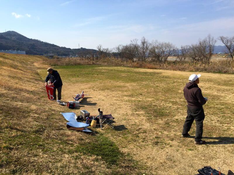 昨日は夜遅くまで飲み会、ヘロヘロになりながら飛行場へ。体の調子と裏腹にお天気はとても良く、小春日和の印象。K2さんやI店主、おいやんにK筋さんに加えきよっさんも検定練習のためにリポ満載でフライト。風はそこそこあるものの、そんなに寒くもなく楽しめました。K2さんのパターンは見ていてもとてもきれいで、上手いなぁと思わせます。機体もいいんでしょうけど腕だよなぁ…(笑) きよっさんもK2さんをナビにつけて練習三昧。SuperStageEXは高級感溢れまくってました(^^;;