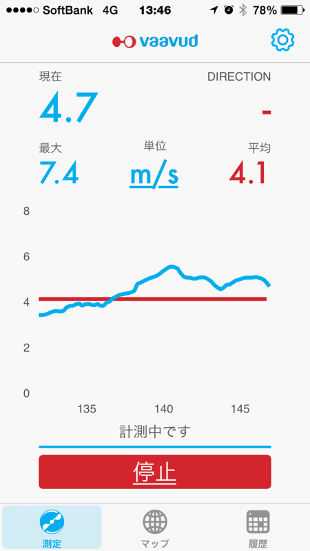 vaavudは平均風速4m/secをはじき出しました(^^;;