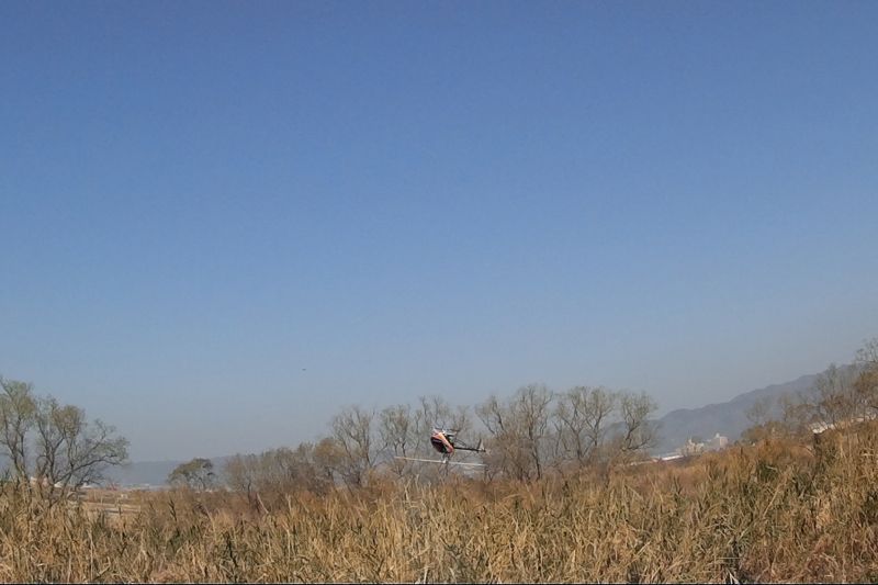 SDX初号機はギヤ欠けのためお休みですが、TREX700Nは気合入れて飛ばしました…が手がかじかむ…(笑) マルチばっかり飛ばしてるせいか、8の字でも落としそうなヘタレっぷり。途中、おいやんがお見えになりOlympusを飛ばしたので、後ろからDiscoで離発着を撮影。こりゃ難しい…。おいやんはビビってしまったのか、離陸時にペラを欠く始末…プレッシャーかけてごめんなさい…m(__)m