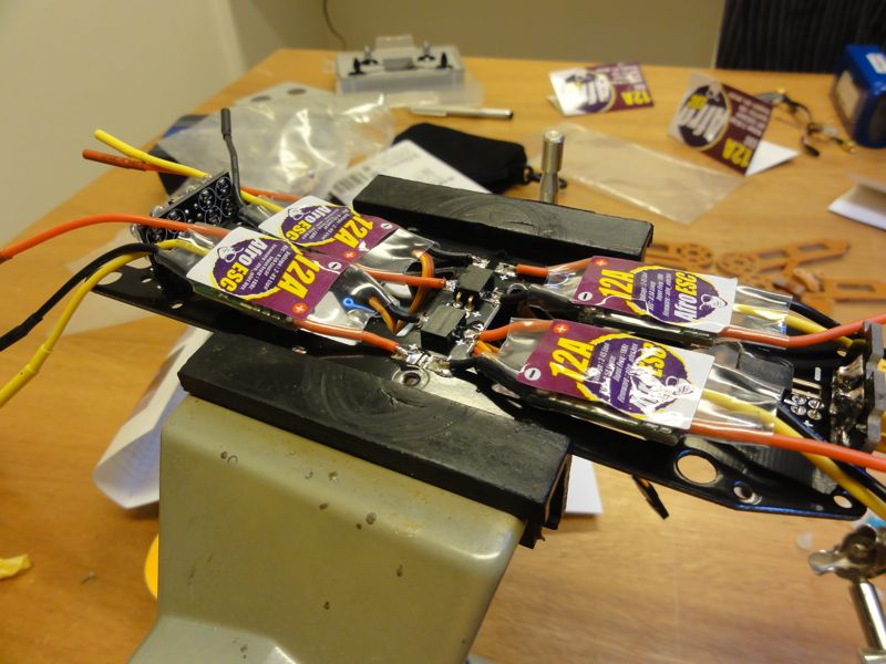 ESCはフレーム下部へハンダ付けして収める仕様。ただ今完成度30%くらい?
