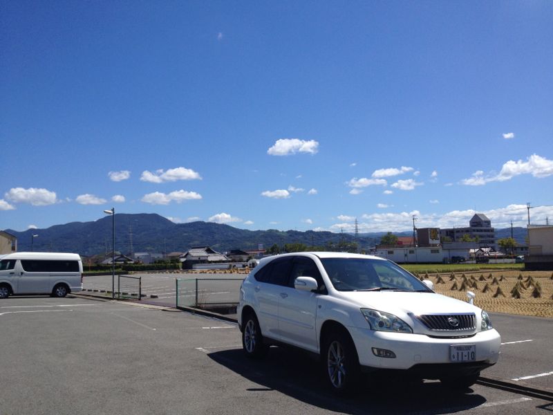 深夜まで続いた飲み会は、帰ってきたら4時前(笑) 一寝入りして職場に放置していた車を回収しにタクシーで向かい、その足で飛行場へ。秋晴れのいいお天気です。おいやんの車が新しくなったのと、JYALAさんのハイエースが車検で代車中だったので普段と違う駐車場の様子(^^;;