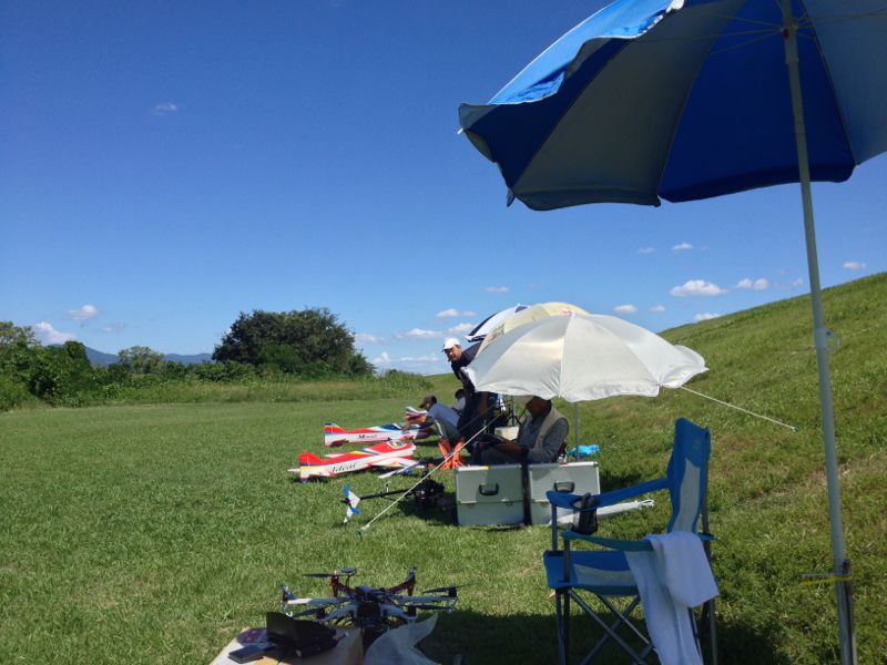 まだ軽く二日酔いだったので初号機を飛ばそうとしたところ…謎のリセット動作が頻発。最初はCGYかと思ったのですが、hatayanさんの解析でレギュレータに難有りとの結果に。イニシャライズ動作でサーボが動き始めるとBECが落ちちゃうようです。これがフライト中に起これば即死です((((;゚Д゚))))