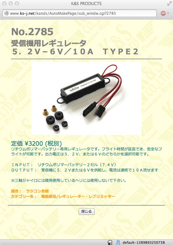 …が、このレギュレータ、【3軸ジャイロ搭載機には使用しないでください】…???ええええ〜っ(^^;;ちゃんとしたレギュレータを買わないといけないんでしょうか…orz