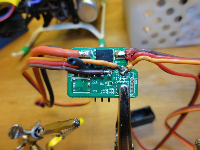 初号機の電源周りも変更しようと思って色々持って行きましたが断念。JRのEスイッチに変更の上、ALIGNのレギュレータを変更する予定です。とりあえず現地では仮組み。おお〜、なんとなくかっちょいい〜(^^)/JRのEスイッチ(D)ですが、不要なリードは外してしまいました。