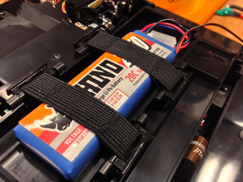 あとはちょっとした工作。FX-22の電源を2Sリポに変更。XT60コネクタを取り外し、サーボ用コネクタをハンダ付けし直し、シュリンクして搭載。この間までCaipiに使ってたやつです。20Cですが、プロポ電源なら十分でしょう。
