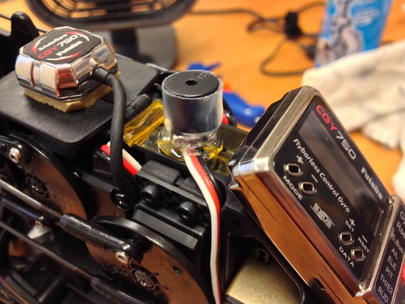 あとは機体捜索用のブザーを搭載。これがないと遠くへやることができません。今回はHobbyNetから販売されているものを使用しました。取説などは一切なく、『4ch以降で使ってね』との注意書きのみ(笑) どうも一度鳴り出してしまうと、ビープ音が変わって鳴り止まない仕様のようで不用意にスイッチを入れたりF/Sに入れたりするとずっと鳴り続けますのでご注意を。まぁ、必要時に鳴らないよりはマシですけど(^^;;