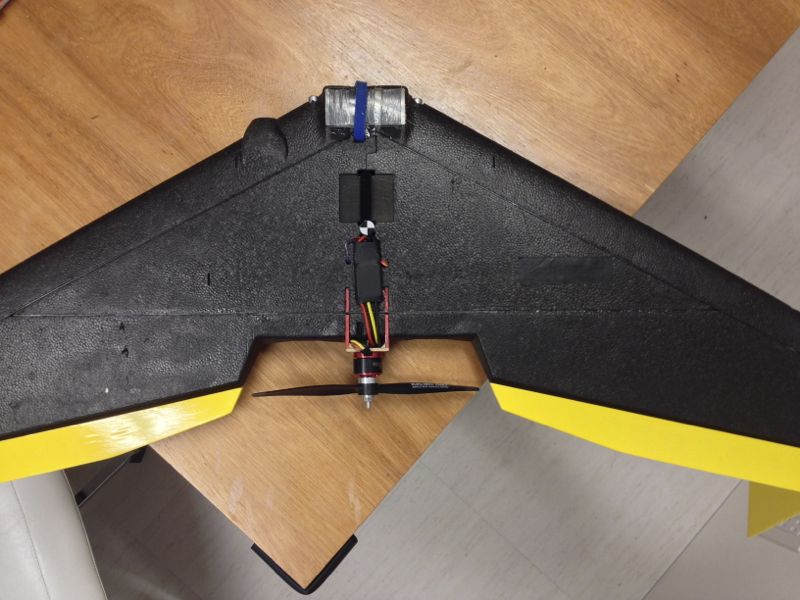 あとはCaipiのバランス取り。この間のフラつきはどうも重心があってなかったようなので再検討。重いモーターに変更したのが響いたのかもしれません。他の全翼機はどうなのだかわかりませんが、Caipiの重心は結構前にある印象です。重心直上にはジャイロを載せてますが、後方にはモーターとペラ、前方にはバッテリとカメラが有ります。今回、カメラをSJ4000に変えたことで20gほど軽くなり、モーターは推奨品に比べ30gほど重くなってます。以前飛ばしていた時よりも後重心なので、釣り用のおもりを翼の中に入れてバランスを取ってみました。これで良くなったらいいのですが…。
