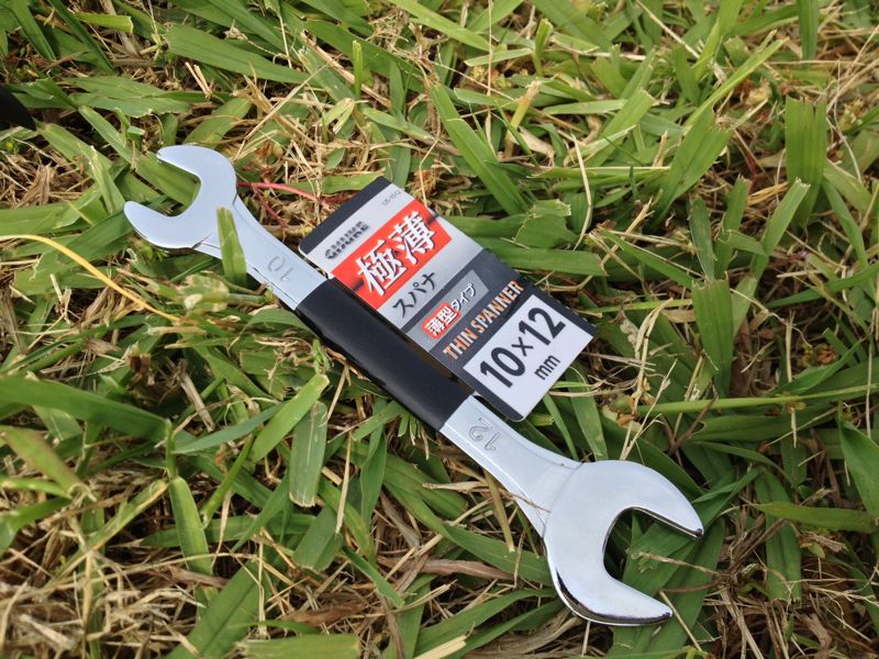 まずはペラ。最初8x4.5の折ペラで飛ばしましたが、2〜3周でモーターがかなり熱くなっていたので8x6ペラにしようと付け替えを試みたところ13mmのスパナがないことに気づき、近くのホムセンへダッシュ…ところがなぜか買ってしまったのは12mmレンチという失態…orz 結局必死になって手で外しましたが、オチが見えてきそうな予感。