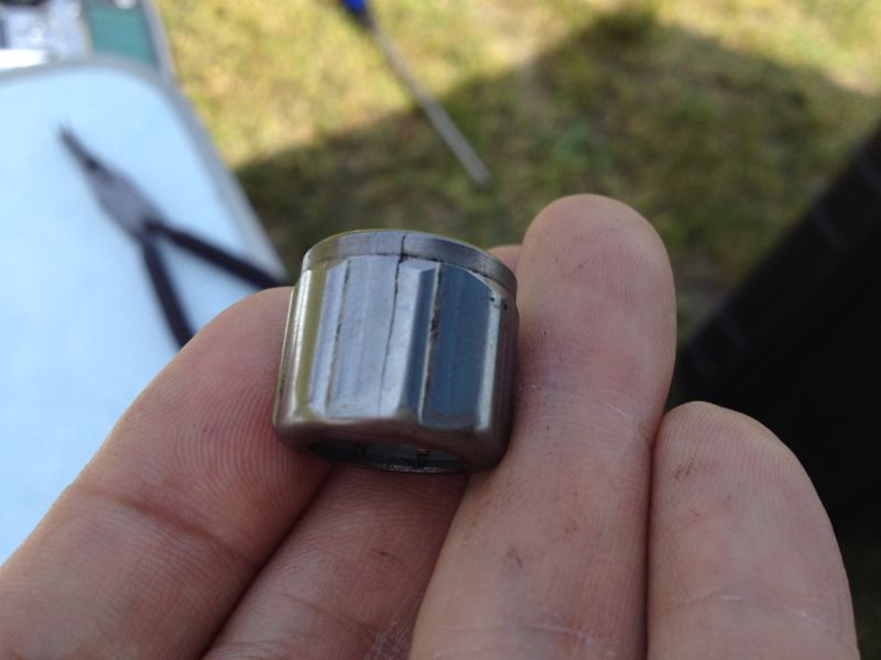弐号機はなんとか無事に浮上し、トラッキング調整で良い感じに。ところがスロットルを吹かしてみると一瞬回転の上がりが遅れます。スロットルサーボ周りは異常なく、K2さんの指摘で【ワンウェイでは?】ということになりワンウェイを点検。パッと見た目にはわからなかったのですがhatayanさんの【真】老眼でクラックが発見され、その後は次々とクラックが判明。大小合わせて4〜5つくらいクラックが入ってました(^^;; たまたま持ち合わせのワンウェイの予備があり現場でさっさと交換。いい感じにつながりました。その後テールの緩みもありましたがなんとか対処。無事帰還いたしました。