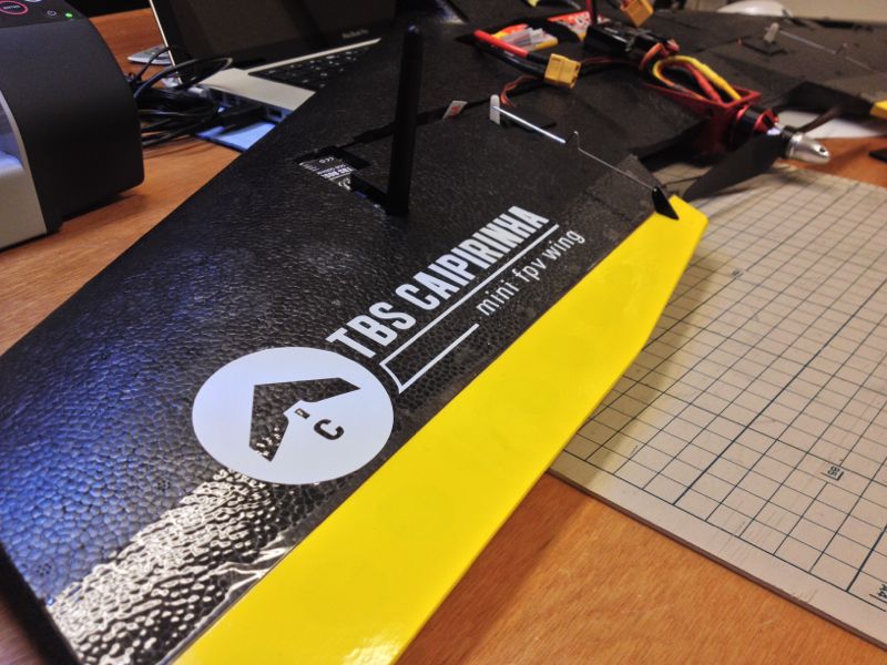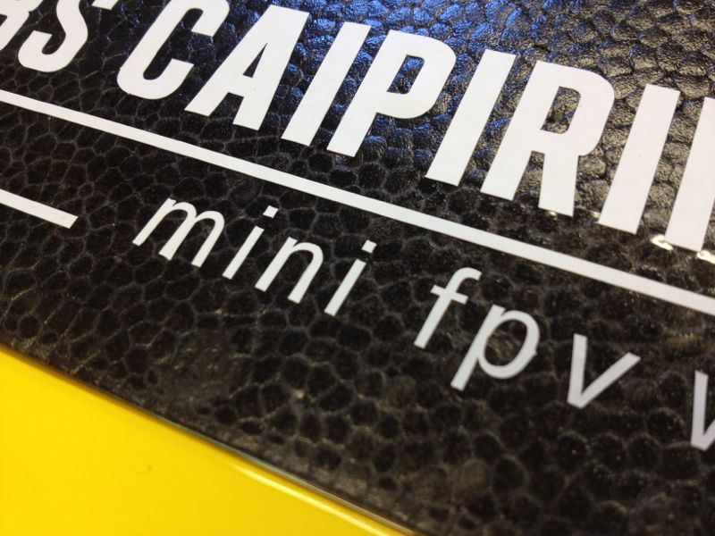 TBS Caipirinhaは一部機材待ち。ボチボチ見た目もいじろうか、ということでロゴを作成。キットに同梱されてるデカールもあるのですが切り文字じゃないので見た目がイマイチでした。"mini fpv wing"の"i"、ドット部分が1mm四方なのですぐ外れちゃうかも(笑)TBS Caipirinhaのロゴはこんな感じに。"i"部分がどれだけ持つかは謎…。